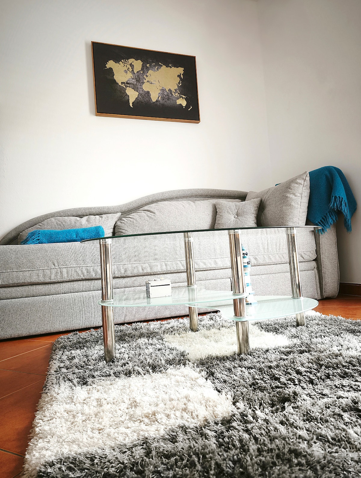 This is a ground floor apartment of 34 square. It is very sunny, full of light and very warm during the winter. It has one balcony looking towards the mountains. On the opposite there is a big door facing on courtyard. It is equipped with a lot of love and desire to make everyone feel comfortable in it. As I graduated in painting I tried to apply my affinity for visual art in arranging this space.