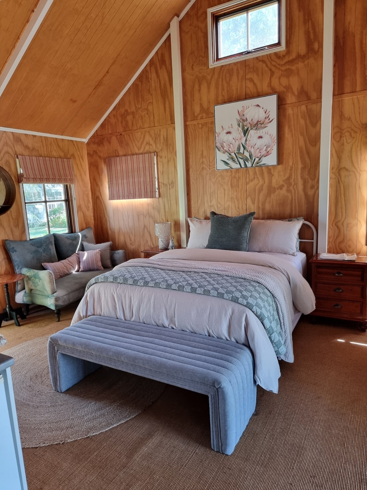 Een studio met een privacyhek om op je eigen terras te kunnen zitten en te genieten van je tijd hier bij The Blue Wren Tin Shed. Gratis wifi. Gratis parkeren op het terrein Een queensize bed, tweezitsbank, kleine eettafel en stoelen, magnetron, koelkast, Nespresso-apparaat, broodrooster, borden kommen, bestek. Extra beddengoed,handdoeken,dekens en verwarming. We zitten nog steeds midden in het creëren van onze droomtuin, dus je kunt mezelf en mijn man van tijd tot tijd in de tuin zien. We bieden een licht continentaal ontbijt