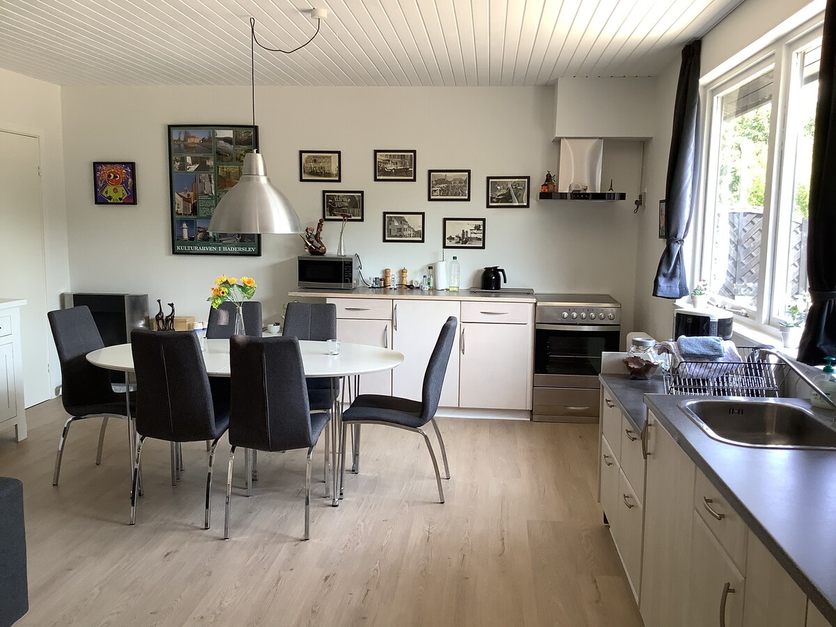 Charmante oude nieuwe verbouwde timmerwerk. Centraal gelegen, met slechts 200 meter voor dagelijks gebruik, 150 meter. Pizzaria, 150 m naar treinstation, 4,4 km naar Wadden Sea Center, 6 km naar Ribe en 7,3 km naar Riplay speeltuin.