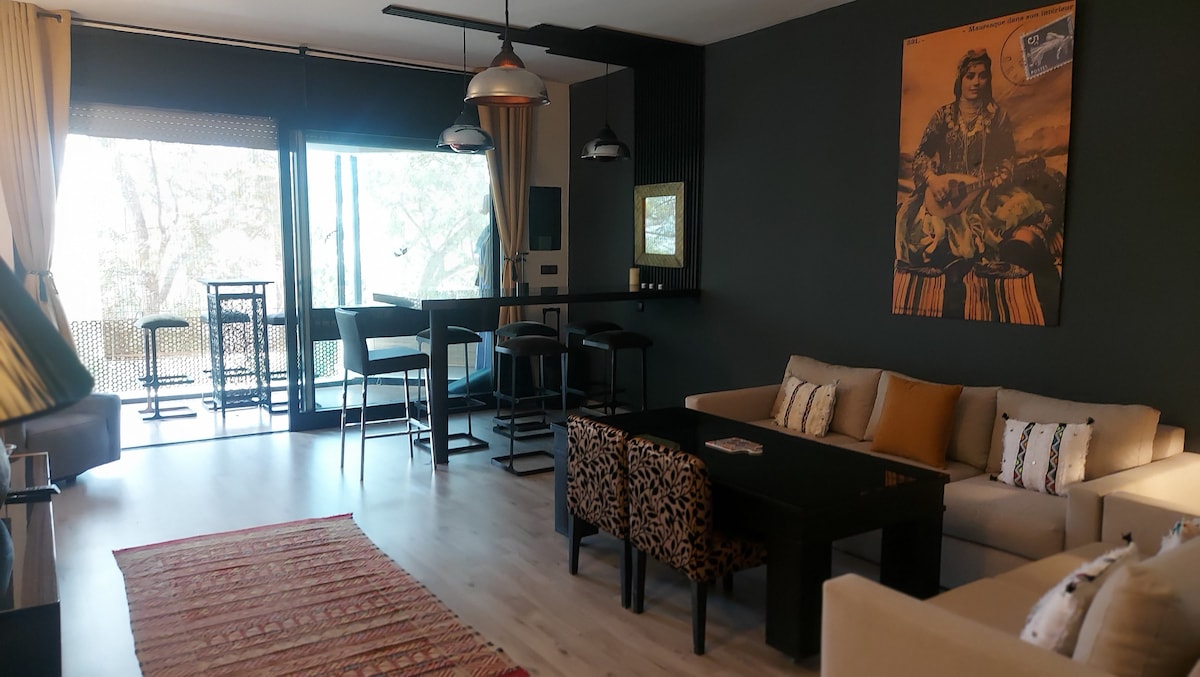 Modern appartement met afgesloten slaapkamer, volledig gerenoveerd in juni 2025. Het is licht, rustig en zorgvuldig ingericht, heeft een gastvrije woonkamer, een uitgeruste open keuken, een eigen slaapkamer met een tweepersoonsbed en een moderne badkamer. Ideaal gelegen in het centrum van Rabat, op korte loopafstand van het treinstation Rabat-Ville. Snelle wifi, smart-tv, airconditioning en zelf inchecken.