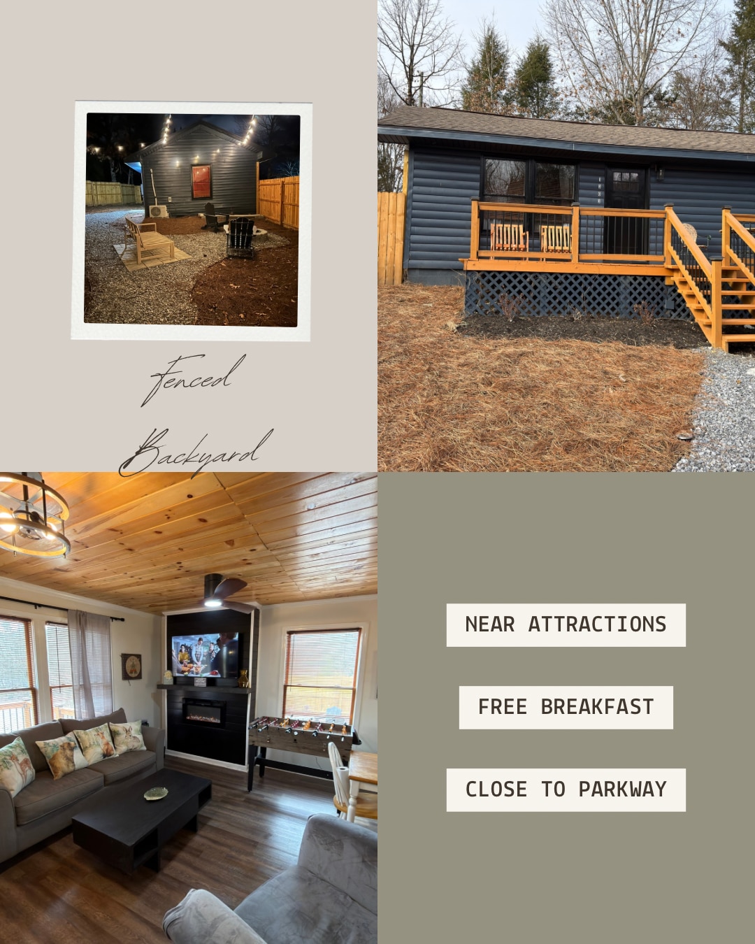 Welcome to a cozy mountain cabin where quiet woods, glowing firelight, and fresh Smoky Mountain air set the tone for a relaxing stay close to it all. - Sleeps 6 | 2 bedrooms | 3 beds | 1 bath - Hot tub w/ mountain views - Indoor wood-burning fireplace & electric fireplaces - Deck w/ fire pit, hammock & outdoor seating - Family-ready w/ crib, games, arcade & theme room - Kitchen, washer-dryer, wifi & dedicated workspace