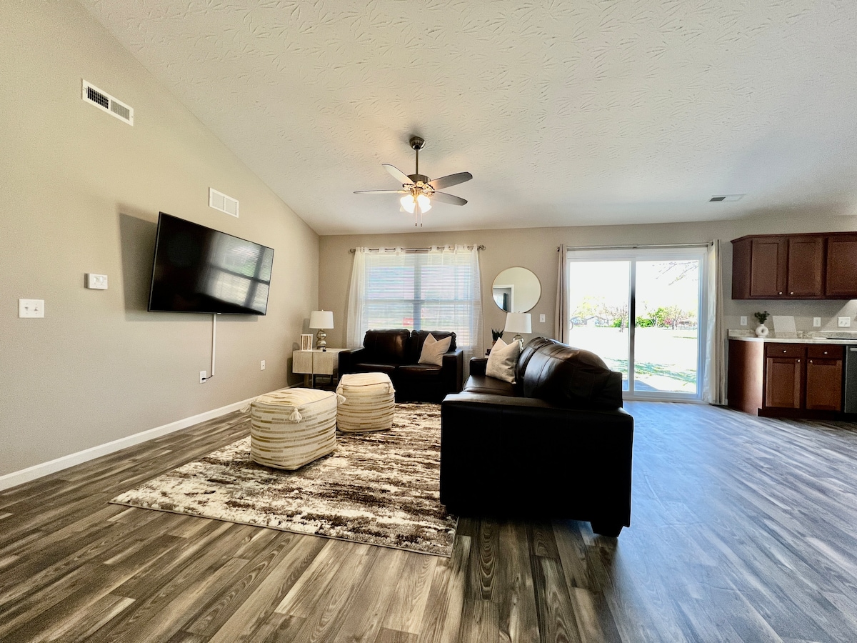 Geniet van onze ruime hoofdslaapkamer, gloednieuwe meubels, rustige achtertuin met een 2 persoons bubbelbad, barbecue, volledig uitgeruste keuken, speelkamer, handige parkeergelegenheid en 3 ruime slaapkamers. We hebben alles wat je nodig hebt om je benen te strekken en te ontspannen. Ideaal voor een bezoek aan bezienswaardigheden in Cincinnati (25 min) of Dayton (15 min), evenals King 's Island (15 min). In de buurt van winkels, restaurants en entertainment. Kinderen en gezinnen zijn welkom!