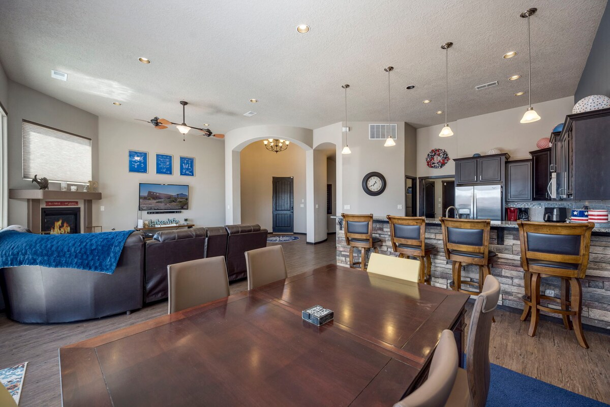 Bring the whole family to your home away from home with lots of room for fun. Close to town for shopping or dining. This neighborhood is night sky friendly. Minutes away from Elephant Butte Lake (you can see the Dam Lights from the deck!) Walking and Bicycle Friendly Neighborhood. Large kitchen for prepping meals to serve on the outside deck overlooking the beautiful Rio Grande Valley. Plenty of space for you and kids to relax and have fun.