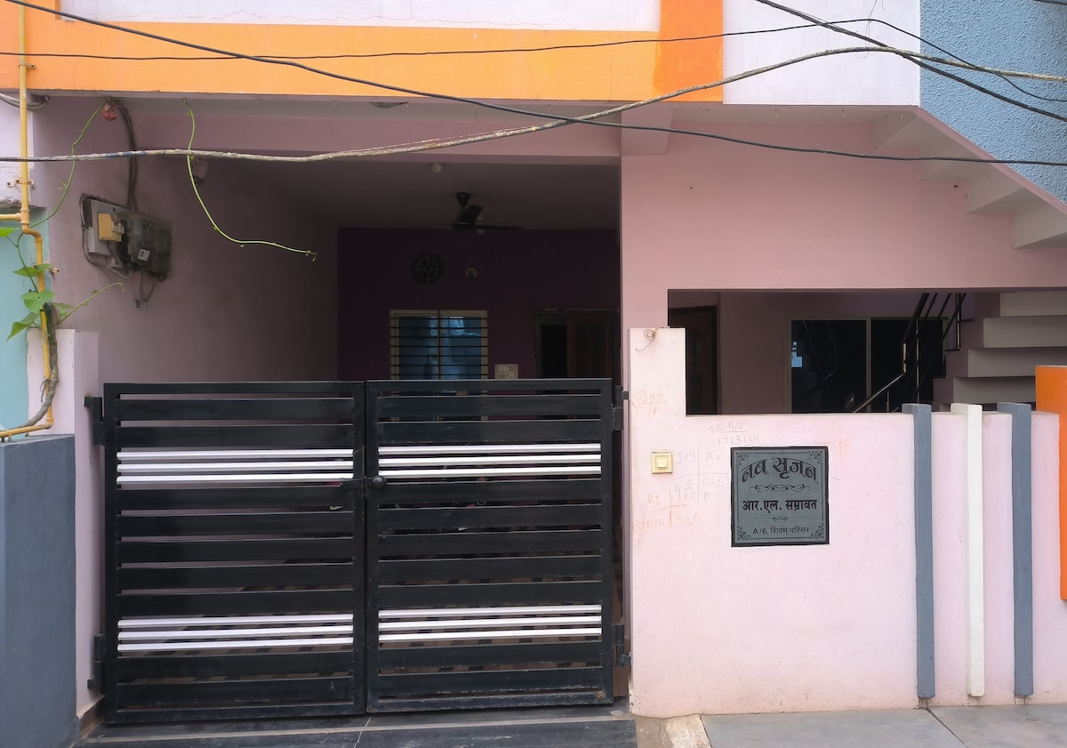 ✨ Welkom bij Navkar Homestay! Ervaar de spirituele uitstraling van Ujjain met het comfort en de warmte van een echt Indiaas huis 🌼 📍 Slechts tien minuten van de Mahakaleshwar-tempel. Boek de hele accommodatie voor je groep en geniet van volledige toegang — 2 slaapkamers, 2 extra tweepersoonsbedden in woon-/bijkeuken, 2 badkamers, balkon, keuken en een grote lounge met spelletjes. Perfect voor feesten, reünies en langere verblijven. Verblijf in een gezellige 2BHK op de begane grond, terwijl wij boven wonen — altijd beschikbaar als je iets nodig hebt!