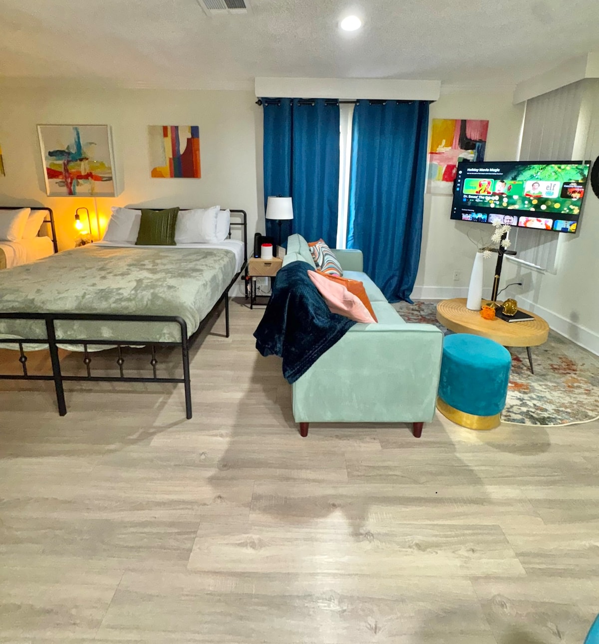 Geniet van uw verblijf in deze prachtig ingerichte studio met alle gemakken van thuis. Het bed is queensize. Wij zijn gelegen in College Park van Orlando. Op Edgewater Drive zijn er restaurants, bars en boetiekjes. Dicht bij het centrum, 30 minuten van alle attracties, 5 minuten van een van de grootste ziekenhuizen van de stad en 23 mijl van de luchthaven ORMC. Op loopafstand van de historische Dubsdread Golf Club en restaurant. Toeslag voor huisdieren vereist. Zorg ervoor dat je het huisdier aan de boeking toevoegt.