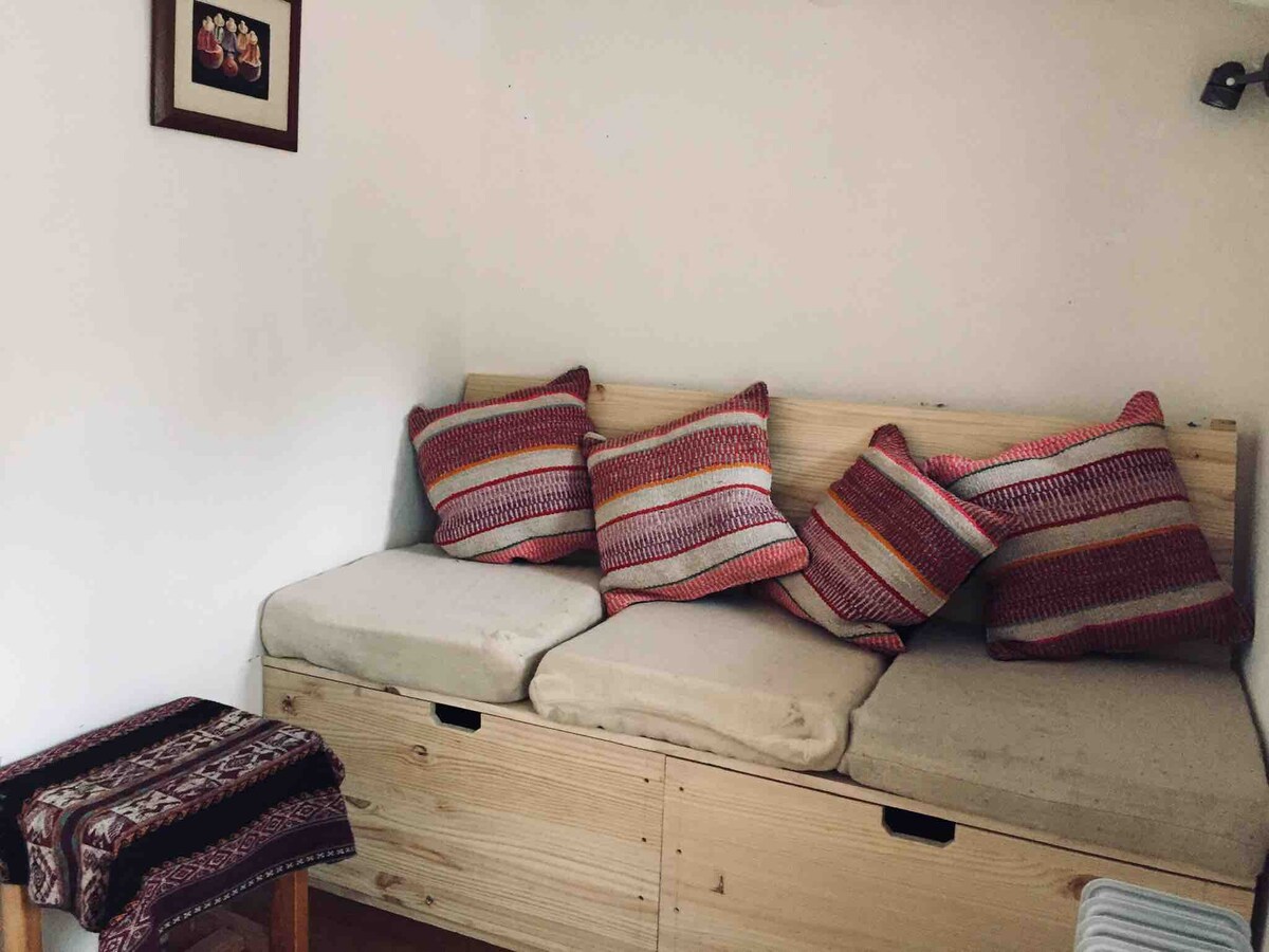 Dit lichte gezellige appartement biedt een prachtig panoramisch uitzicht op de stad en de heilige Ausangate-gletsjer. Gelegen in de bohemien buurt San Blas is het 5 minuten lopen via een origineel Inca-pad naar het San Blas-plein waar je lokale boetieks, markten, cafés, bakkerijen en restobars vindt. Je bereikt ook het centrale plein van Cusco (Plaza de Armas) binnen 10 minuten lopen en de Tempel van de Maan en het eucalyptusbos in slechts 20 minuten.