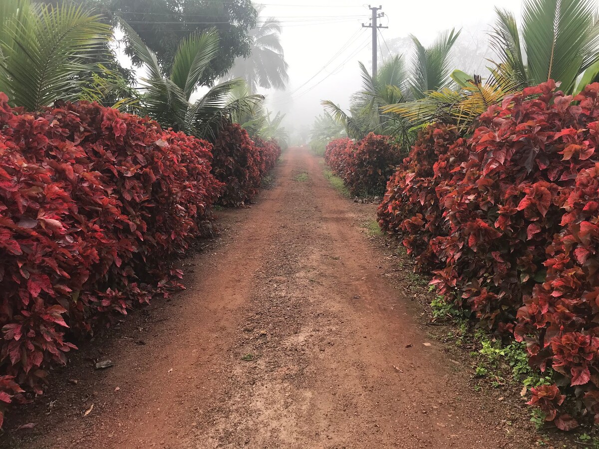 Welkom bij Dandeli Aura Farm Stay, een serene retraite verscholen in weelderige landbouwgrond. Dandeli Aura Homestay biedt een perfecte mix van comfort en natuur, genesteld in het weelderige groen van Dandeli. Onze homestay is ideaal voor gezinnen en avonturiers en biedt gezellige accommodaties, huisgemaakte maaltijden en gemakkelijke toegang tot wildsafari's, raften op de rivier en trekking. Ervaar warme gastvrijheid, een serene omgeving en een verkwikkende ontsnapping te midden van de schoonheid van de natuur.
