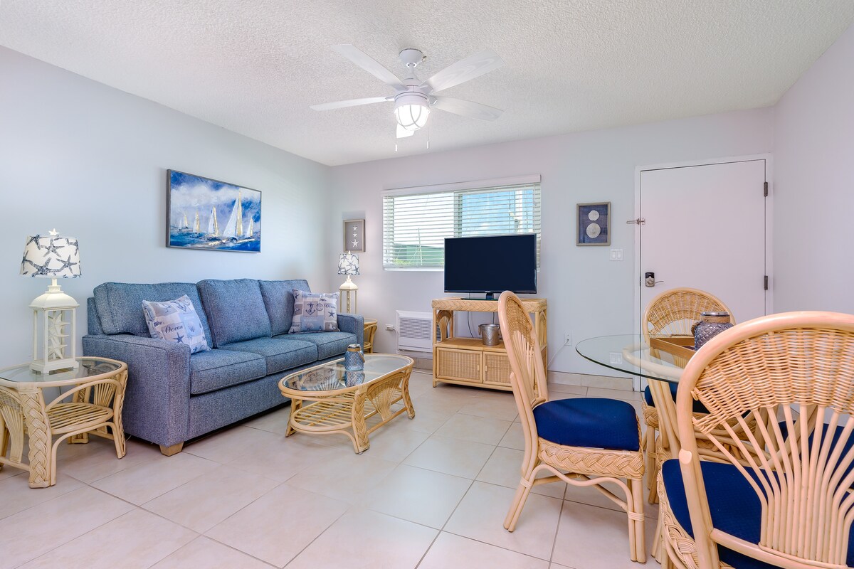 Omarm de charme van de Keys in onze serene ontsnapping voor stelletjes of gezinnen. Dit toevluchtsoord met marinenthema ligt op slechts een steenworp afstand van een verwarmd zwembad en de oceaan en biedt kingsize comfort, een gezellige slaapbank en een afgeschermd balkon voor intieme avonden. Duik in lokale avonturen met beschikbare strandspullen of ontspan in onze luchtige ruimte, met een volledig uitgeruste keuken en een smaakvolle inrichting. Ideaal voor diegenen die op zoek zijn naar een mix van ontspanning en oceanische verkenning, het is je perfecte toevluchtsoord aan de kust.