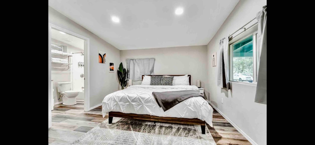 Vraag naar vroeg inchecken en op 5 minuten rijden van de luchthaven! Ontspan en ontspan in dit rustige, zonovergoten studio-gasthuis. Deze ruimte is perfect voor iemand die een ontsnapping uit het dagelijks leven nodig heeft. Word wakker met de zon, maak wat koffie, werk vanuit huis met rust en stilte en stilte. Ook geweldig voor een romantisch uitje met je lieverd. Queen bed wat sfeerverlichting. Kijk wat tv op onze roku en trap bij de sterren door de dakramen. Geniet van een eigen ingang met buitenterras.