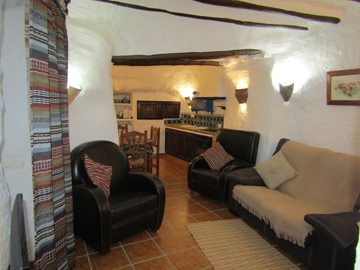 Welkom bij Cueva Encantada! Ons traditionele Spaanse grothuis biedt een lichte, lichte grote kamer met open haard en keuken, drie gezellige tweepersoonskamers en een badkamer met douche. Blijf binnen en geniet het hele jaar door van het comfort en de rust van een grotwoning, of geniet van het overdekte terras met uitzicht over het dorp Galera en de bergen daarbuiten. We denken dat je net zoveel van ons grottenhuis zult houden als wij.