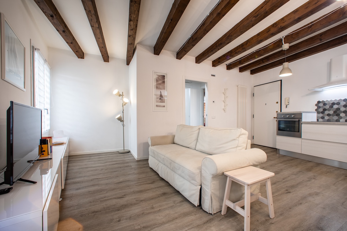 Enjoy the best of Vicenza in this luxurious, newly-renovated home in the historic center. Apartment includes autonomous heat and cooling, a private bathroom, large TV with streaming apps included, mini-fridge, coffeemaker. Desk, office chair, and super-fast Wi-Fi included. Sleep comfortably in a Queen-size bed for 2, just a 5-minute walk to the Basilica Palladiana and the Piazza dei Signori. Public parking nearby.