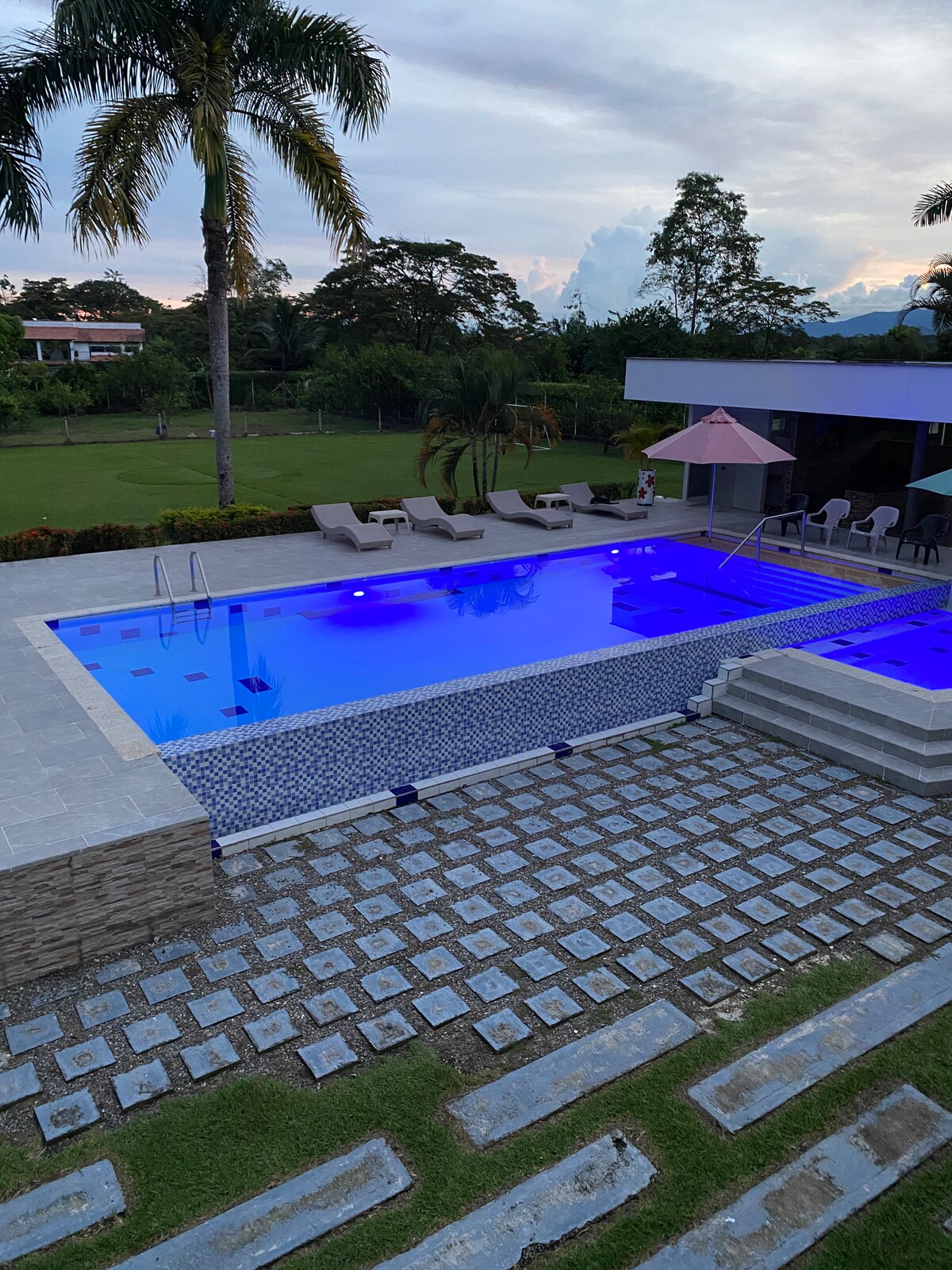DISFRUTA DE UN ESPACIO PARA ESTRENAR CREADO PARA DESCONECTARTE EN MEDIO DE LA NATURALEZA, CON TODAS LAS COMODIDADES, A SOLO 5 MINUTOS DE LA ZONA URBANA DE VILLAVICENCIO 3 ESPACIOSAS HABITACIONES, TODAS CON BAÑO PRIVADO, Y AIRE ACONDICIONADO ZONA DE ESTUDIO, COCINA ABIERTA, SALA CON TV (ZONAS COMUNES CON VENTILADOR DE TECHO). PARQUEADERO PARA 7 CARROS JARDINES TROPICALES PISCINA CON ZONA PARA NIÑOS , JACUZZI, MINITEJO Y BBQ BAJO PERGOLA FRENTE A LA PISCINA.
