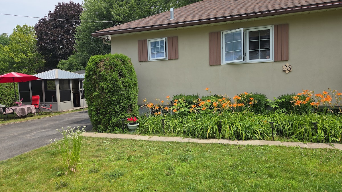 Mooie, lichte, rustige en zeer schone onafhankelijke unit Een kingsize bed. Een eenvoudig bed. Een slaapbank onafhankelijk en privé : - Familiekamer - 11'5" X 15'6" - Slaapkamer - 13'7" X 8'6" - Badkamer (keramiek) - 9'7" X 6'6" Geen keuken, maar wel een eigen koelkast & magnetron & eettafel Gratis parkeren (verschillende gratis plekken op straat beschikbaar) 30 minuten naar Montreal Downtown 5 minuten naar het oosten van Montreal 3 minuten rijden naar Tim Hortons, Mc Donald, A&W, Subway, Jean Coutu, IGA, tankstation,