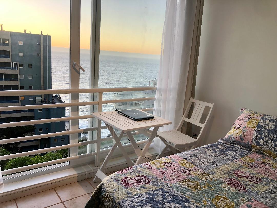 Appartement op de 11e verdieping, uitzicht op de oceaan, Geniet van hotel en casino, snel internet, in het hart van Viña, op steenworp afstand van Avenida Peru en San Martín. Restaurant en winkelgebied. Comfortabel uitzicht op het terras. Volledig uitgerust en fijn ingericht. Woonkamer met geïntegreerde keuken en slaapbank. Suite kamer met 2 bedden. Gebouw met verwarmd zwembad en een fitnessruimte. Ondergronds parkeren op het appartement. Geschikt voor 2 volwassenen of een volwassene en een minderjarige.