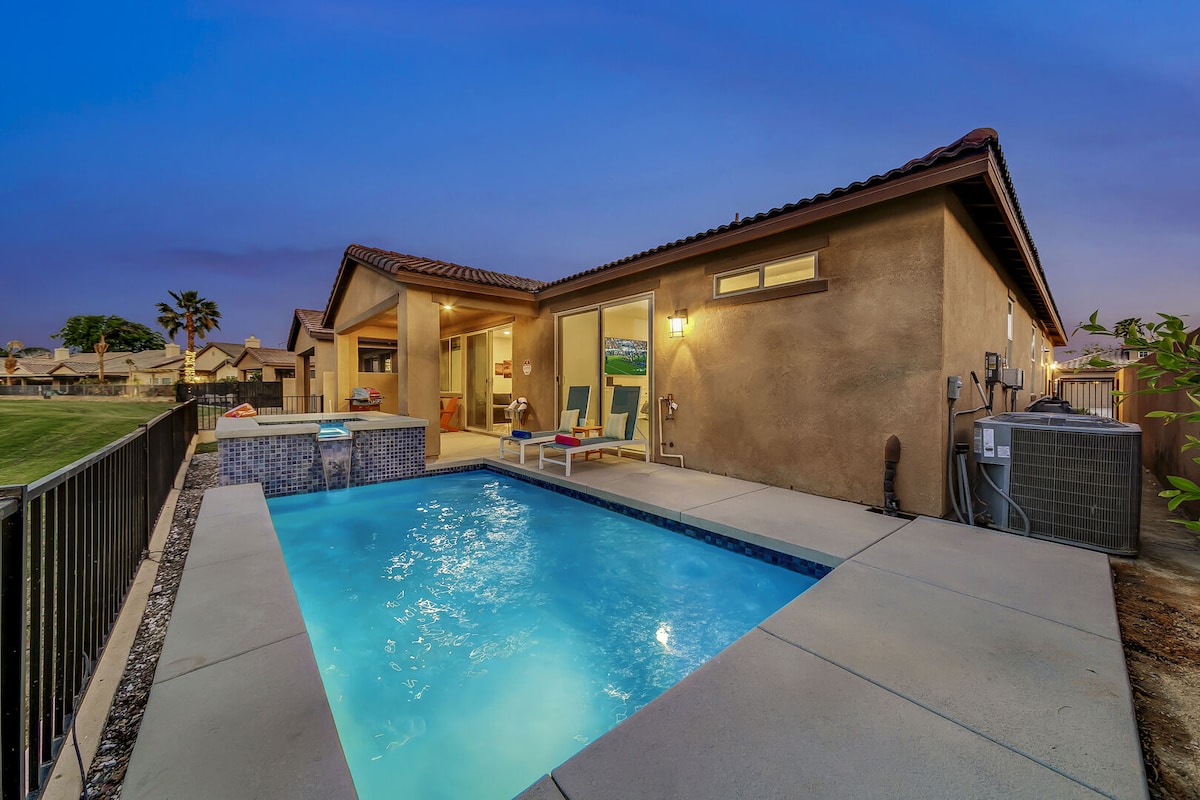 Chique woning in Indio Resort met zwembad, spa, uitzicht op de golfbaan