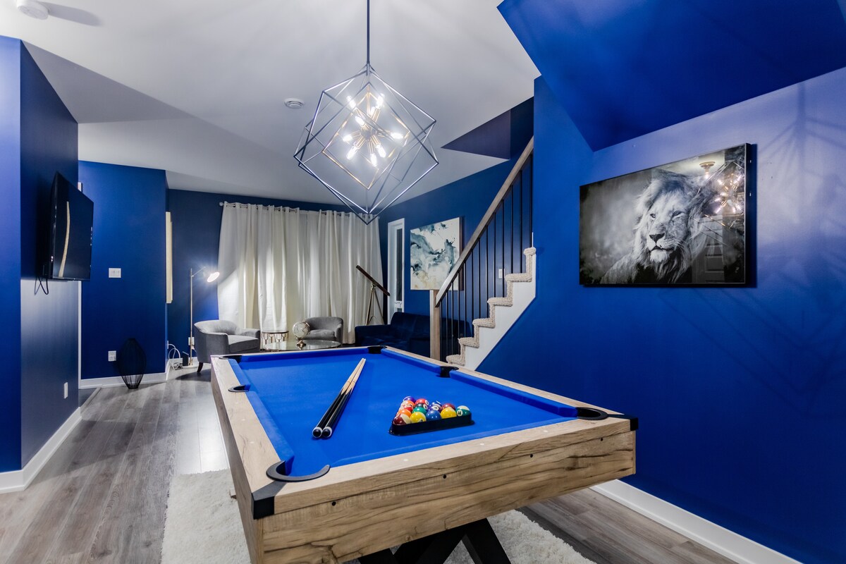 Extravagante lounge Airbnb-thema en pooltafel