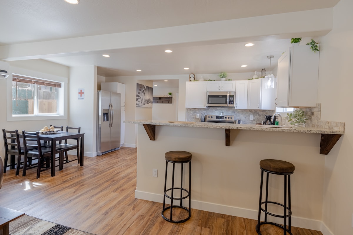 Geniet van je verblijf in Kellog in dit gerenoveerde gezellige huis! Centraal gelegen in een rustige buurt en op slechts een paar minuten rijden van Silver Mountain & Silver Rapids Indoor Waterpark. Starlink WiFi, gemakkelijk parkeren, tv 's in elke slaapkamer, videogames, boeken, arcadespellen, koffie, snacks en meer! Kellogg is een van onze favoriete uitjes met al zijn activiteiten die de stad het hele jaar door te bieden heeft, dus we hebben meer dan een jaar doorgebracht met het creëren van deze perfecte ruimte. Vooraf reserveren wordt aanbevolen voor activiteiten.