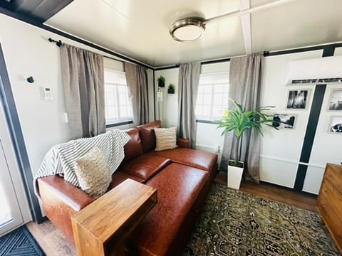 1 slaapkamer, 1 badkamercontainerwoning in Monahans, Texas. Comfortabel en ruim plan. Perfect voor kort tot tussentijds verblijf voor eventuele olie- en gas-/energieprofessional die in het Delaware Basin werkt. Groot bed, grote douche, met kitchenette en woonkamer om te ontspannen na een lange werkdag. Gelegen op 12 hectare in The Rise at Monahans RV Park. Rustige en veilige locatie 1,8 mijl ten zuiden van I-20 in Monahans.