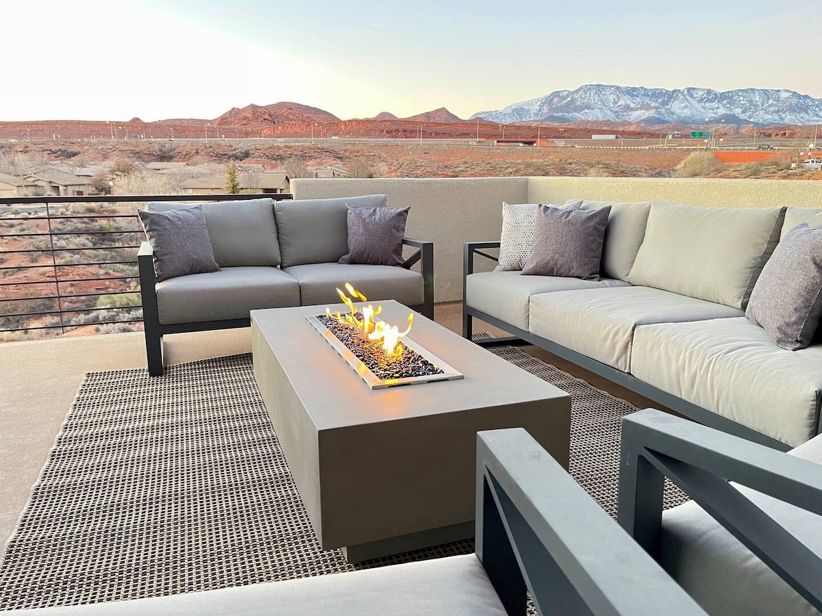 Brand New townhome is located 36 miles to Zion's National Park, and features a private outdoor hot tub, fire pit, and a heated pool! The quiet Vida Sol community is located only 2 minutes off of I-15 and 5 minutes to the St George outlet stores and Walmart/Costco. Mountain biking, walking trails and two parks nearby. ✓Private hot tub 🏊Heated Pool (Shared, heated year-round) 🛏️3BR/3BA 🛋️2 Living Rooms 👨🍳 Chef's kitchen 📶Fast/Free internet 📺Smart TV's ❄️AC 🔥Fire pit 🍖Grill 🛀Big bathtub