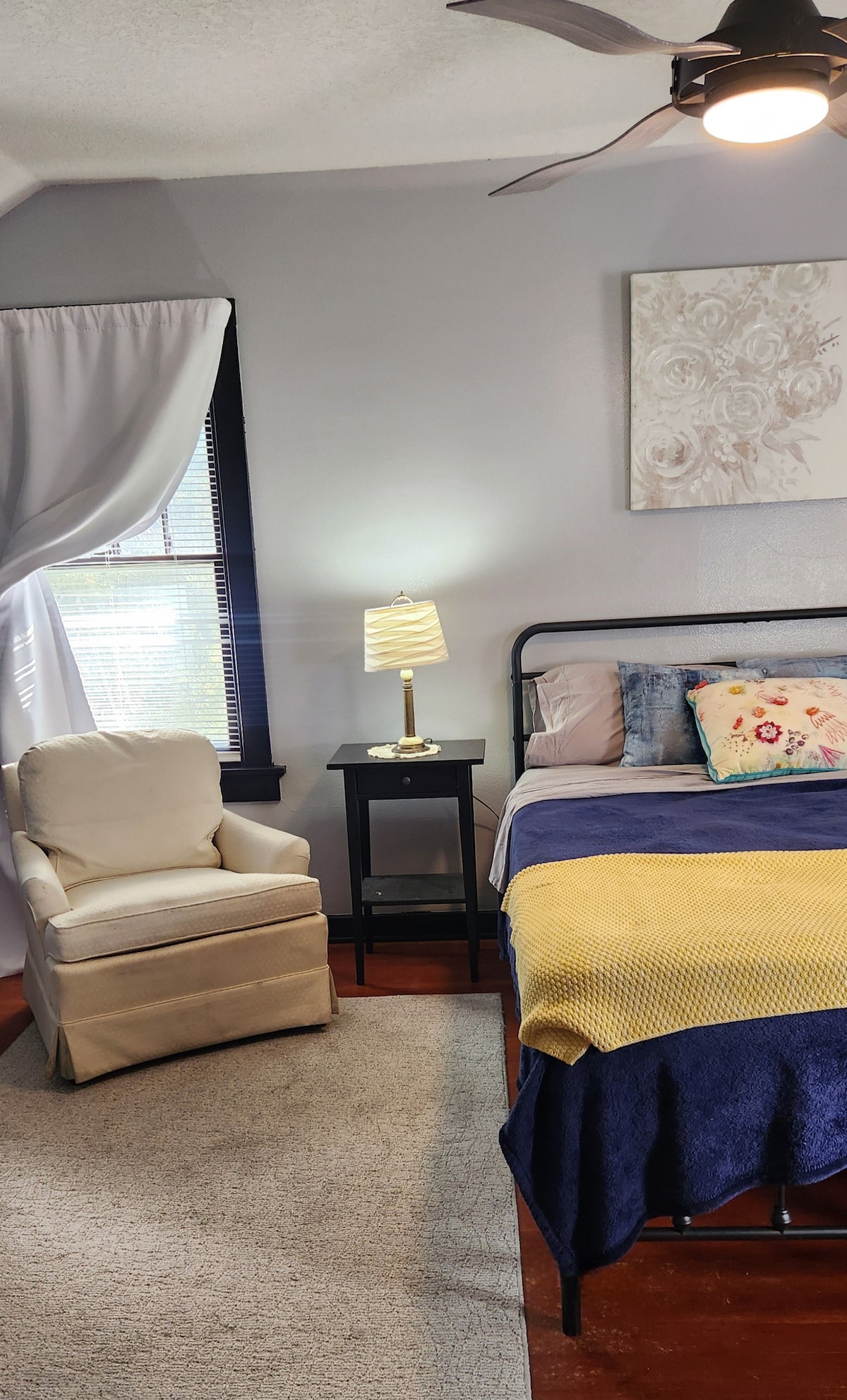 Escape to this storybook retreat, just minutes from downtown! Enjoy a fully fenced backyard, perfect for pets or relaxing by the fire pit. Unwind with cozy interiors, board games, and a stocked kitchen with coffee & essentials. Fast WiFi & workspace make it ideal for work or play. No pet fees!