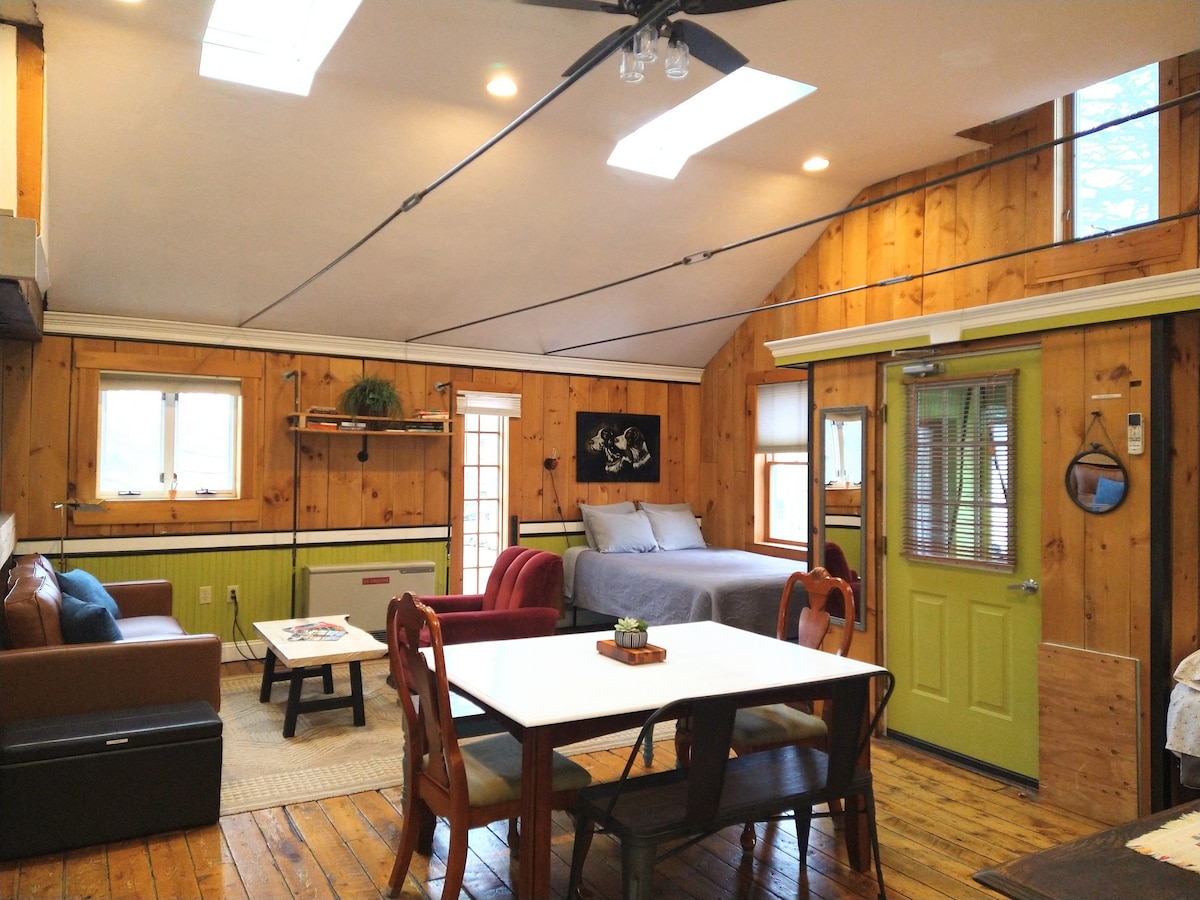 Kom onze unieke omgeving verkennen en verblijf in een gerenoveerde, lichte studio met eigen ingang, afgelegen terras , kitchenette en bad gelegen in het schilderachtige New England-dorp Shelburne Falls. We zijn op loopafstand van tal van winkels, candlepin bowling, gletsjers, tennis-/basketbalvelden, Bridge of Flowers, eetgelegenheden/restaurants, Pothole-foto's, boodschappen, speeltuinen, wandel- en zwemgebieden, een natuurvoedingswinkel en kunstgaleries. Dicht bij Berkshire East en Zoar!