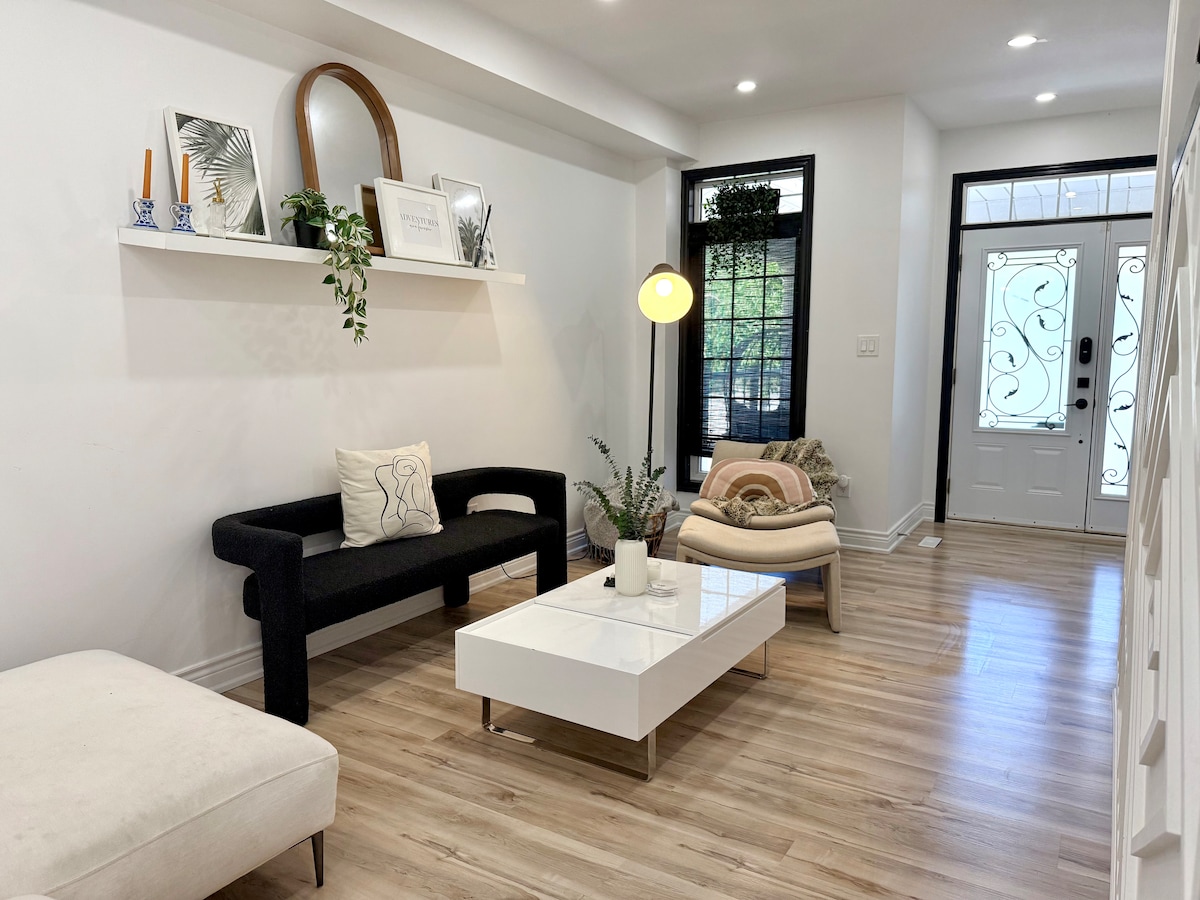 COZY and INVITING, this modern suite is in a quiet, family-friendly Ajax neighborhood. Just 10 minutes to Thermea Spa and Ajax GO Station, and a short walk to parks, shops, and groceries. Newly built with deluxe finishes, the 1,000 sq. ft. space includes in-floor heating, an electric fireplace, a spacious sofa, and smart TV with Netflix/Prime. Downtown Toronto is 35–45 mins by car, and Pearson Airport or Mississauga in about 55 mins.