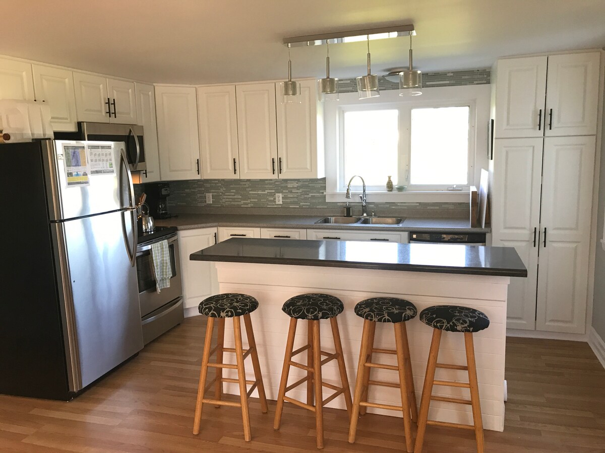 Mijn man Jon en ik ontvangen bezoekers van ons gezellige familievakantiehuis. Ons huis met 3 slaapkamers en 2 badkamers uitzicht op de oceaan is gelegen in het schilderachtige Hunts Point, Nova Scotia. Het ligt aan de overkant van het openbare strand van Hunts Point en op een klein stukje rijden van andere schilderachtige stranden. Liverpool ligt op 10 minuten afstand voor boodschappen; White Point Resort en Quarterdeck Grill elk op 5 minuten rijden. Ontspan op een groot terras terwijl je luistert naar de oceaan. We koken graag en onze keuken is van alle gemakken voorzien.