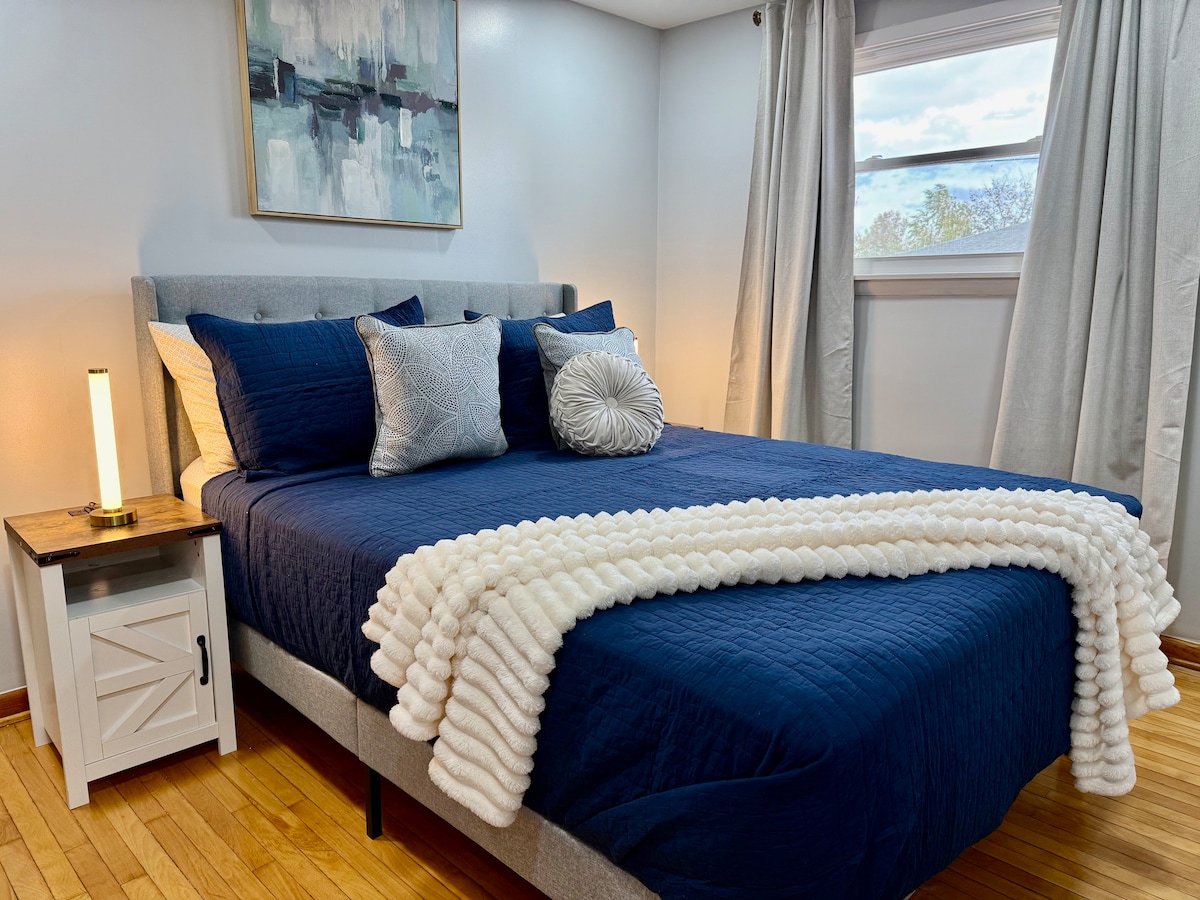 Stijlvolle 2BR in Oriskany met kingsize bed, wifi en wasserette — ideaal voor een verblijf van een week. Welkom bij de Retro Retreat! Een gezellig huis met 2 slaapkamers en 1,5 badkamer, perfect voor gezinnen, reizende verpleegkundigen en professionals die Utica, Rome of de Mohawk Valley bezoeken. Geniet van een lichte serre, een volledige keuken om echt te koken, snelle wifi en een wasserette in huis. Of het nu gaat om een korte trip of een langer verblijf, je vindt comfort, gemak en ruimte om te ontspannen. Er zijn week- en maandtarieven beschikbaar.