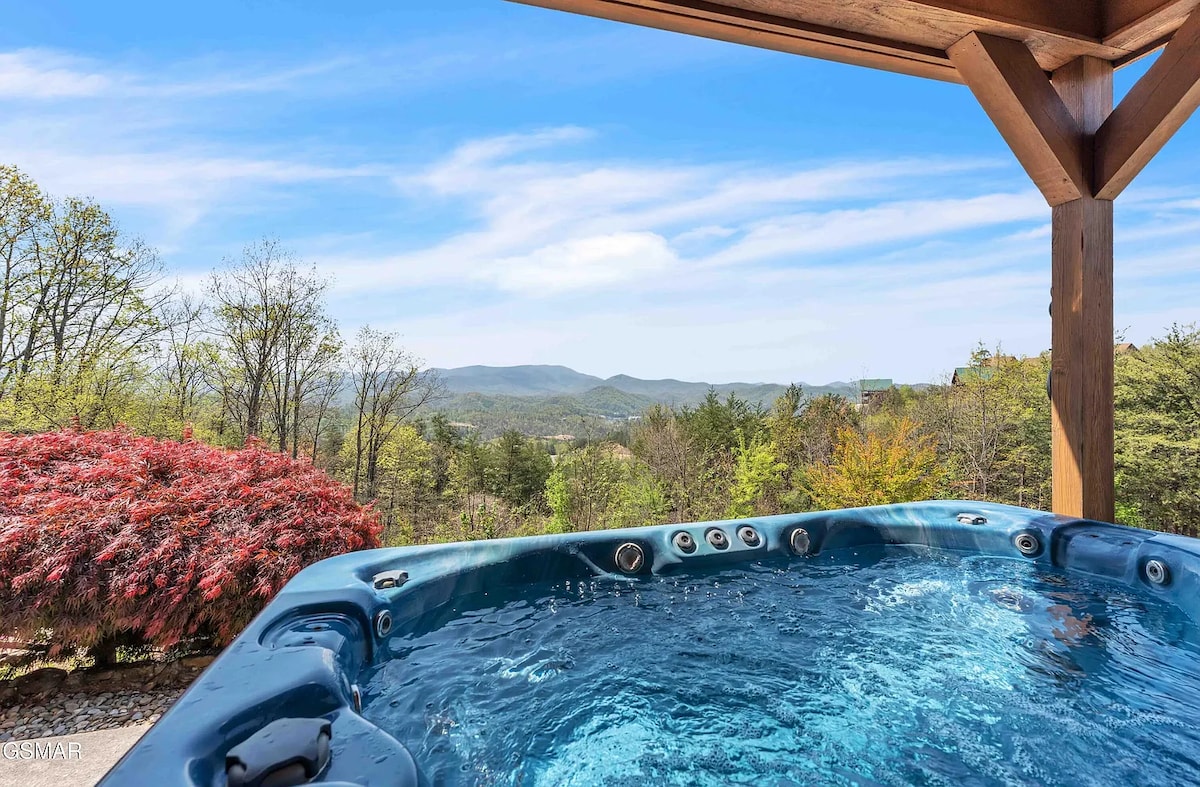 🎅Versierd voor Kerstmis! 📍 15 minuten van Dollywood 🌄 Adembenemend uitzicht op de bergen 🔥 Privébubbelbad + vuurplaats op gas 🛏️ Slaap in comfort: 2 kingsize slaapkamers met luxe beddengoed 🎯 Shuffleboard + bordspellen 🚂 Hoor de nostalgische fluit van de Dollywood-trein vanaf het terras 📺 4K Ultra HDTV's in de hele accommodatie 🍽️ Complete keuken + eetkamer voor 6 personen 💻 Snelle wifi en bureau 🚗 Gratis parkeren + sleutelloze toegang