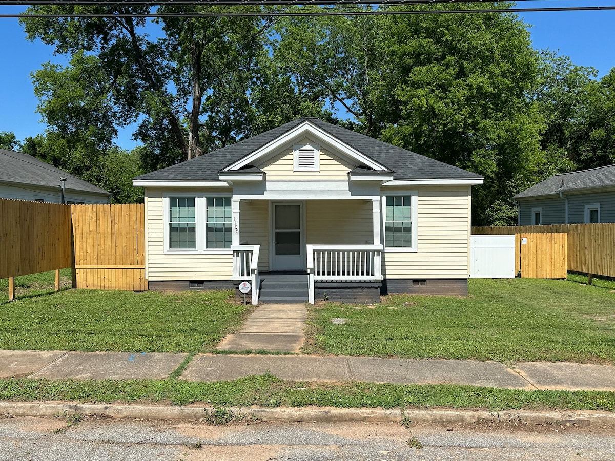 Schattig privéhuisje aan rustige woonlus, in de buurt van de rivier de Saluda. Ontspan met je eigen omheinde tuin, geen trappen en privéparkeergelegenheid. Geniet van een lang weekendje weg, een rustige zakenreis of kom naar de stad voor een evenement! Kitchenette heeft een oven, gootsteen, magnetron, koelkast/vriezer, koffiepot, broodrooster en alle gerechten, pannen, keukengerei die je nodig hebt! Pack-n-play beschikbaar, beddengoed, handdoeken, papierproducten aanwezig. Smart TV, wifi, parkeren. Geen huisdieren, roken, dampen, bijeenkomsten of evenementen toegestaan.