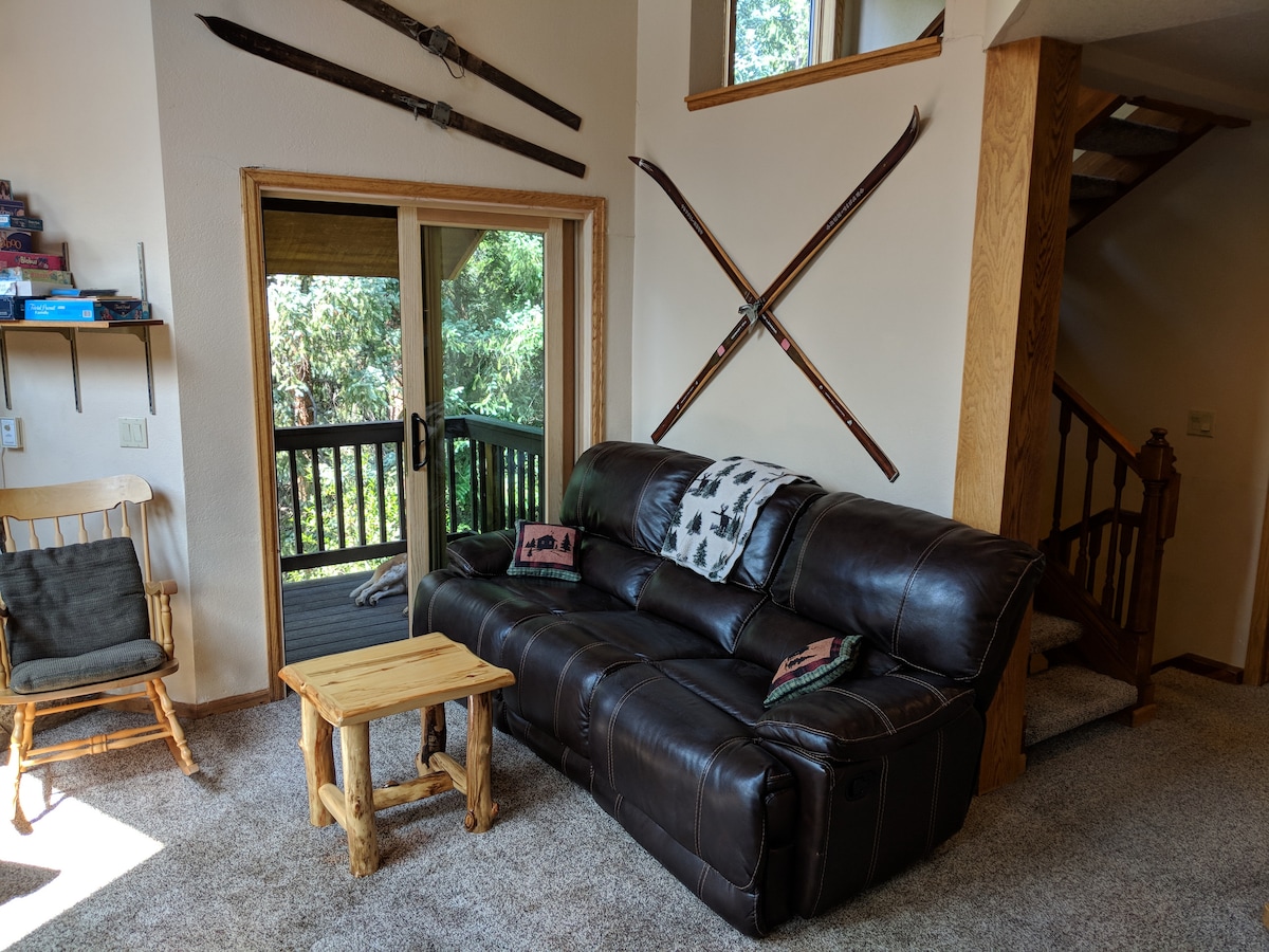 Nestled in the pines and surrounded by soaring peaks, Winter Walk is a skiers dream. One of the few pet friendly properties that offers close to the slope convenience with the ambiance of a private ski lodge. Half a block to the free shuttle or walk 1/3 mile to the chairlift. Come back home and relax in your private 6 person hot tub. We offer custom wood finishes, gas fireplace, and views of the ski slopes and surrounding mountains from virtually every window.