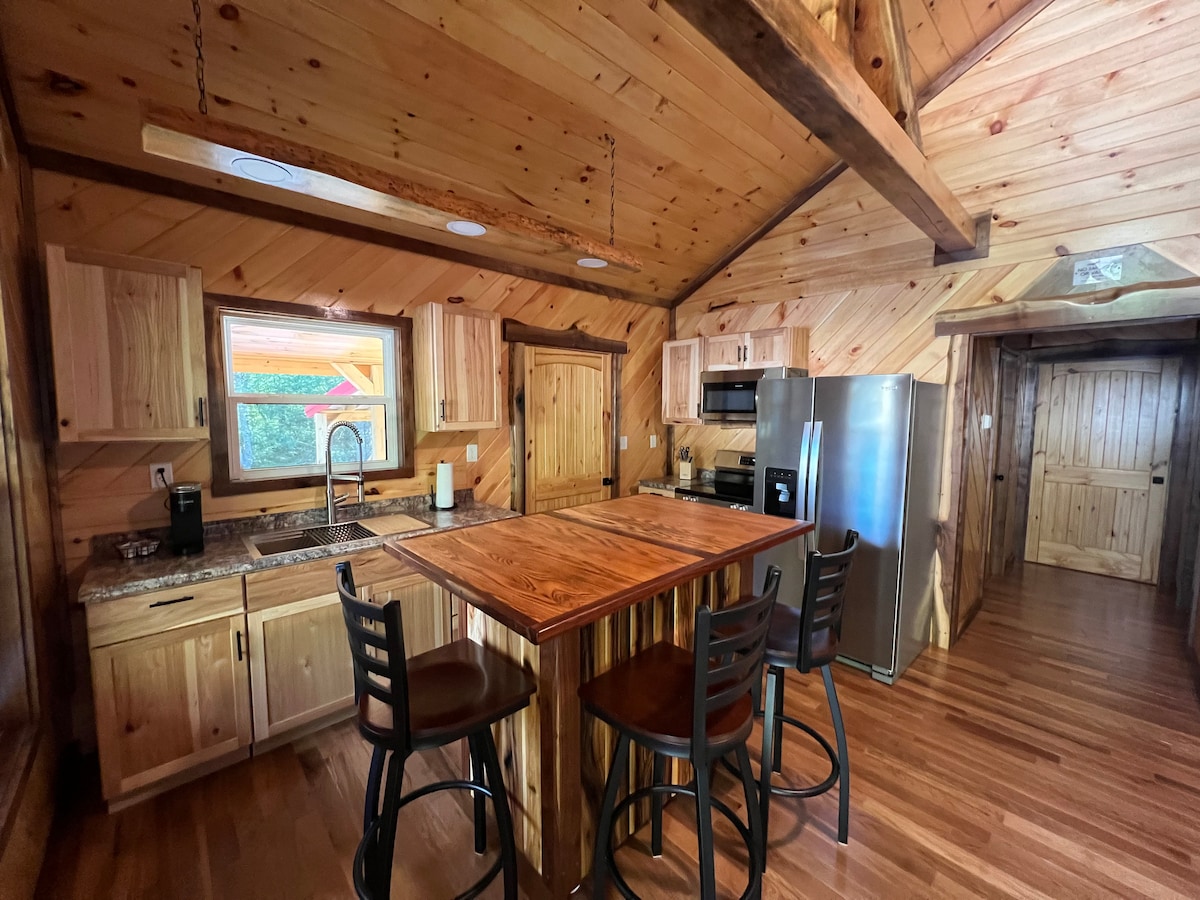 Ontdek The Little Red Cabin, je strakke oase in het hart van Red River Gorge. Deze elegante blokhut beschikt over een kingsize bed en een bubbelbad met een eigen bosachtige achtergrond. Ideaal voor koppels of een gezin van vier personen, geniet van een volledig uitgeruste keuken, snelle wifi, smart-tv en een iconische Pac-Man-arcade. Je bent op steenworp afstand van opwindende buitenactiviteiten, waaronder wandelen, klimmen, tokkelen en ATV-paden. Geniet van een verfijnde ontsnapping dicht bij het beste van de natuur en elk avontuur dat je zoekt!