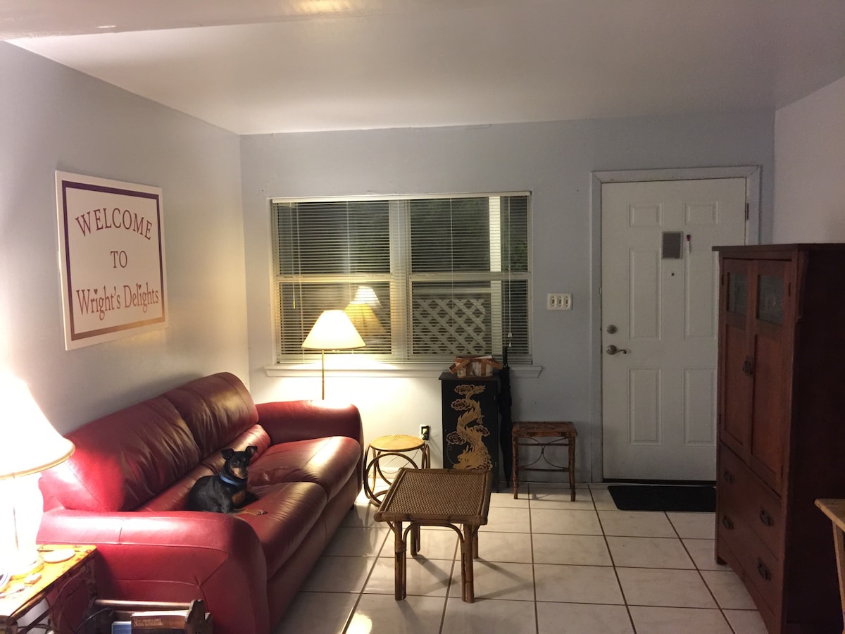 Welcome to your peaceful getaway, central to everything in Tallahassee! King bed ✔ Spacious, mural wall patio with a fenced back yard ✔ Private Parking ✔ Dogs Welcome ✔ Well-stocked kitchenette ✔ Mid-century charm ✔ Coffee, tea, snacks ✔ Cozy up with a movie in front of the custom wood slat wall, cook dinner in the kitchenette, and get a quiet night's rest under a stylish wood ceiling. You are: - 5 mins from TMH - 8 mins to downtown - 8 mins to FSU - 7 mins from I-10