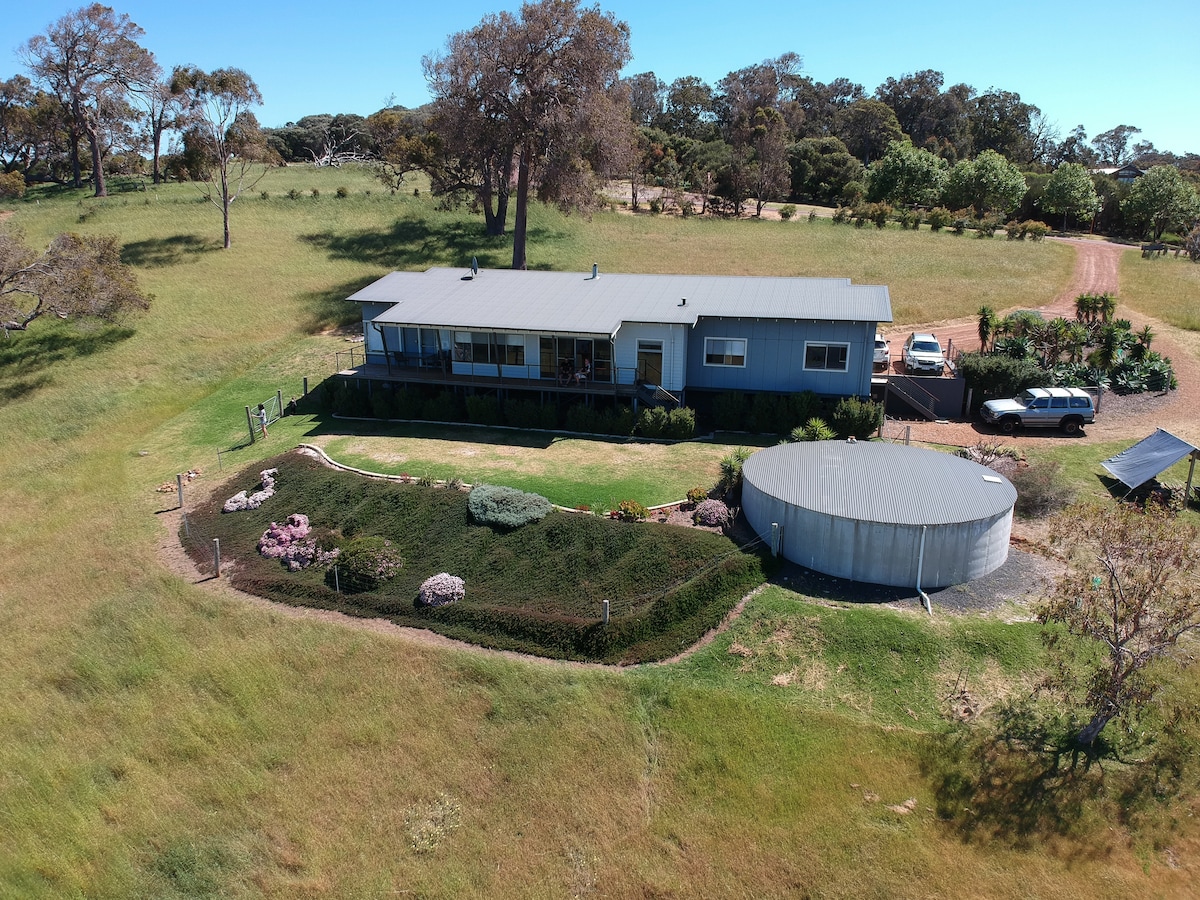 Cairnamohr ..... of 'zorg niet meer' ... heeft alles wat je nodig hebt voor een ontspannende en leuke vakantie in het prachtige zuidwesten van West-Australië. Gelegen op 6 hectare natuurlijk bosland aan het einde van een rustige doodlopende weg is het het perfecte uitje. Ideaal voor een uitgebreide familiebijeenkomst, twee gezinnen met kinderen of groepen koppels. Met 4 queensize slaapkamers, veranda 's rondom, 2 woonruimtes, een grote speelkamer en de bush zelf heb je voldoende ruimte om te ontspannen en te genieten.