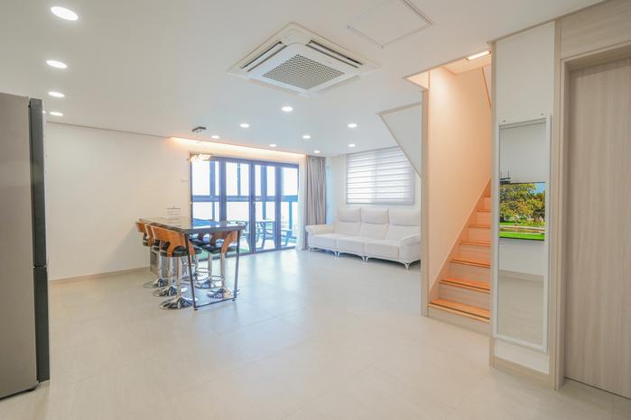 Dit is een nieuw gebouwde privé duplex met uitzicht op zee 'White House'~! Genees jezelf met een uitzicht op zee en een minibioscoop in een vrijstaand huis met twee verdiepingen:) De zee ligt direct tegenover de accommodatie, dus je kunt vissen:) Het ligt op 5-10 minuten rijden van Najeong Beach! # Standaard twee personen, maximaal vijf personen -20.000 KRW/persoon als het standaard aantal personen wordt overschreden # Persoonlijk vuur (gasbrander, fakkel, houtskool, grill) absoluut verboden - Kosten voor elektrische grill: 10.000 KRW - 2 woonkamer/buitenterras elektrische grill beschikbaar - Raadpleeg de foto's. # 2 handdoeken per persoon # parkeren - Gratis parkeren in de open ruimte direct tegenover de accommodatie ★Begane Grond★ # keuken - Koelkast, magnetron, poort, rijstkoker, eettafel, wasmachine (wasmiddel) - Borden en keukengerei - Kookgerei # Woonkamer - Smart-tv (Netflix), ligbank, massief houten tafel, staande airconditioner # Buitenterras - Gebruik tot 20.00 uur, vouwdeur kan worden geopend, tafel voor meerdere personen - Elektrische grill beschikbaar (10.000 KRW) ★2e Verdieping★ # Slaapkamers - Beam projector (Netflix, YouTube), bed voor 2 personen, airconditioning # Terras - Mini-tafel,