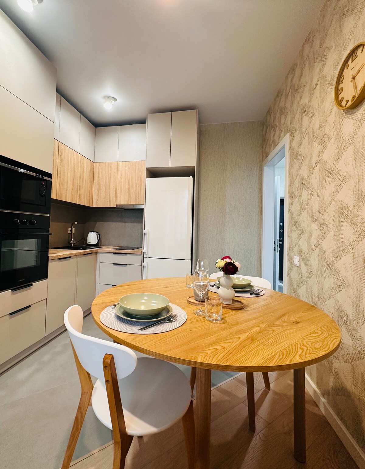 Sea&Sky-appartementen zijn meer dan alleen een plek. Het voelt. Niets overbodig hier. Alleen het licht, de ruimte en de skyline lossen op in de zee. Ligt op de 11e verdieping in het wooncomplex "27 Zhemchuzhina", Valeria Samofalova (Kamanina), 16A/1 Een minimalistisch interieur dat niet opdringt, maar loslaat. Het ontwerp is eenvoudig en eerlijk. Hij schreeuwt niet, hij houdt je ritme. Zoals de zee. Zoals de lucht. Die hier zijn, net buiten het raam. En soms is het genoeg om het gevoel te hebben dat je in je ruimte bent.